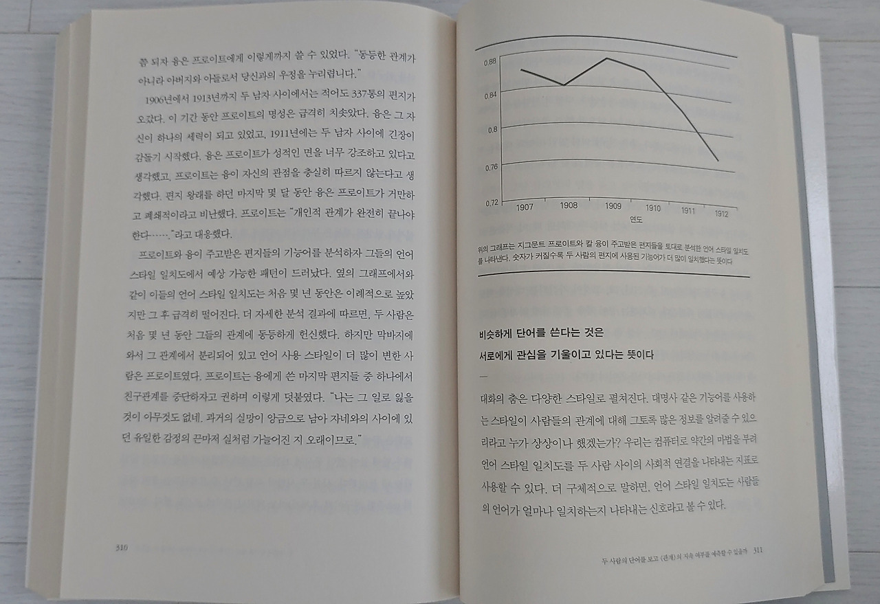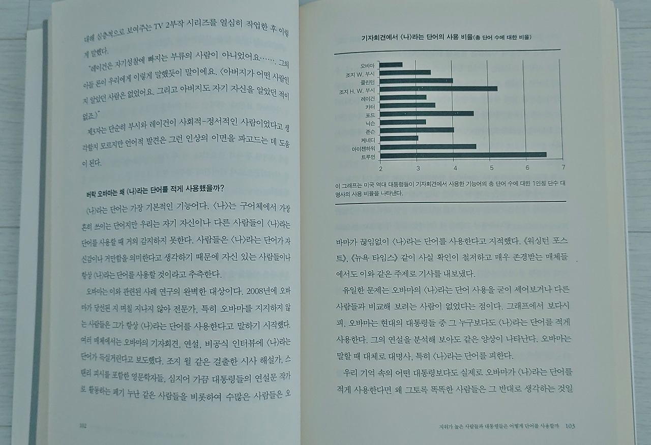 저자는 사람들이 사용하는 기능어들을 모아 통계적으로 의미 있는 범주로 나눔으로써 그들이 어떻게 생각하고, 자신의 세계를 어떻게 조직하고, 다른 사람들과 어떻게 관계를 맺는지 파악하고 있다.