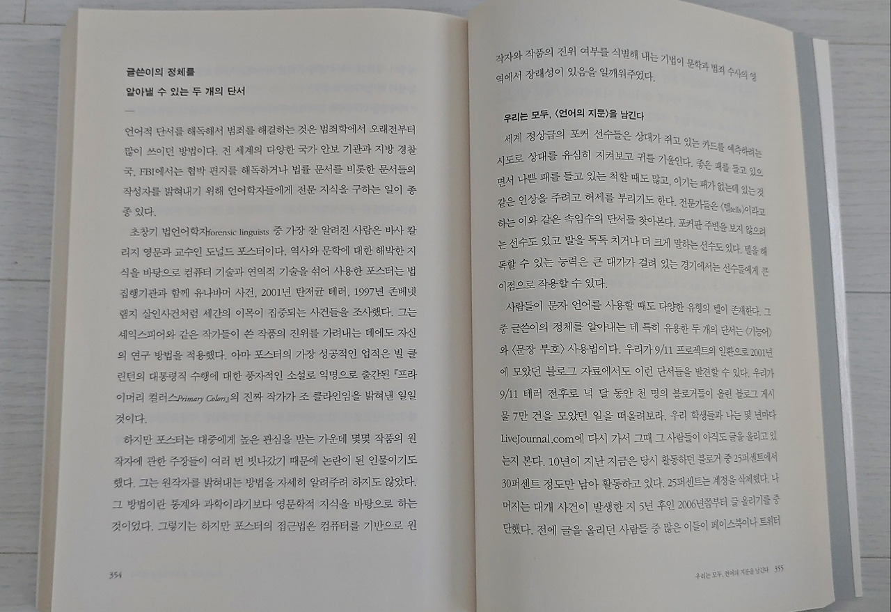 글쓴이의 정체를 알아내는 데 특히 유용한 두 개의 단서는 '기능어'와 '문장 부호' 사용법이다.
