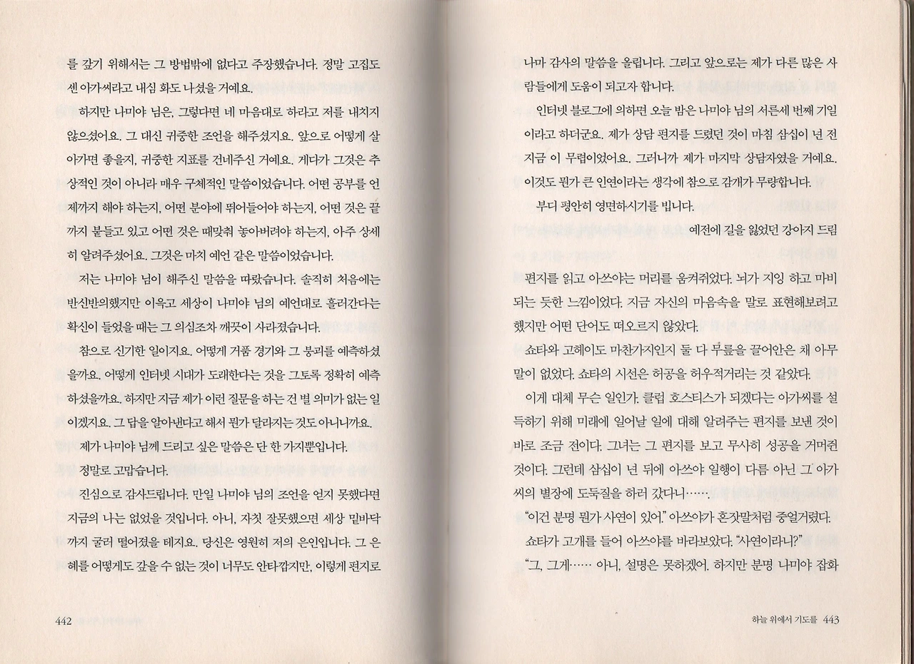 그때처럼 가게 셔터 우편함에 편지를 넣어주십시오. 꼭 부탁드립니다. (219쪽)
