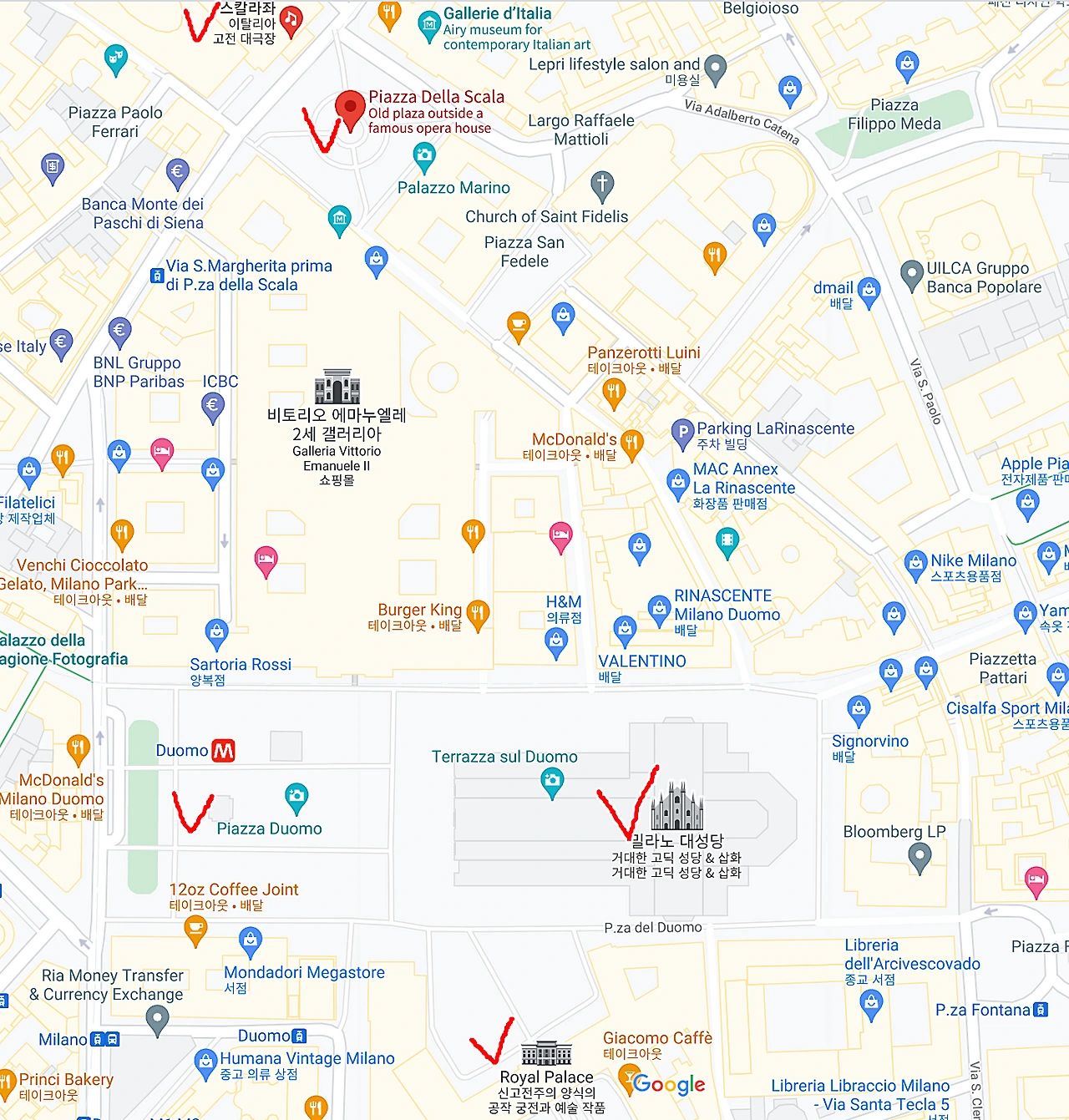 우리는 스칼라 광장을 지나쳐 두오모 광장에서 짧고 강렬한 밀라노 투어를 시작한다.