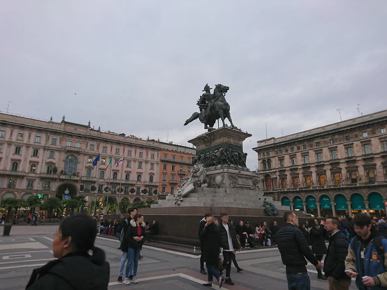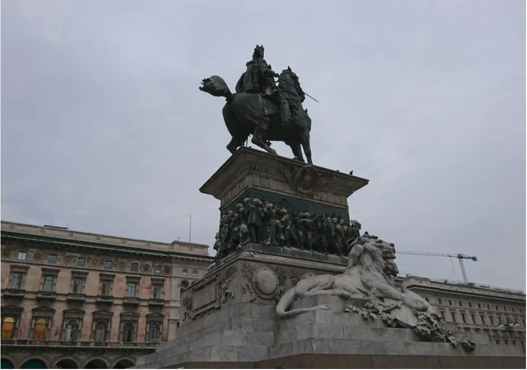 두오모 광장은 밀라노 시민들에게 사랑받는 휴식장소다. 광장 가운데 비토리오 엠마누엘레 2세 기념상이 우뚝 서있다. 비토리오 엠마누엘레 2세(Vittorio Emanuele II, 1820년 3월~1878년 1월)는 사르데냐 왕국 왕이자, 이탈리아 왕국 왕이었다.