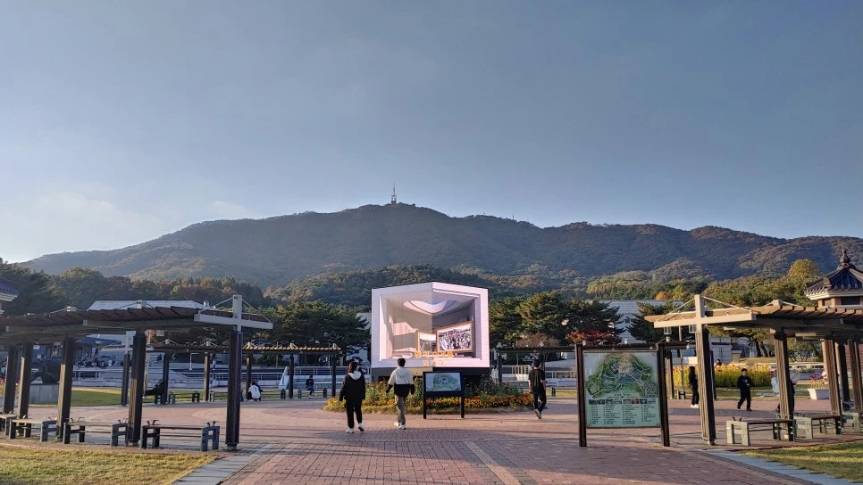 주차장 나서니, 종합안내센터 앞 '겨레 마루' 무대 앞에서 '단풍나무 숲길 힐링 콘서트'가 열리고 있었다.
