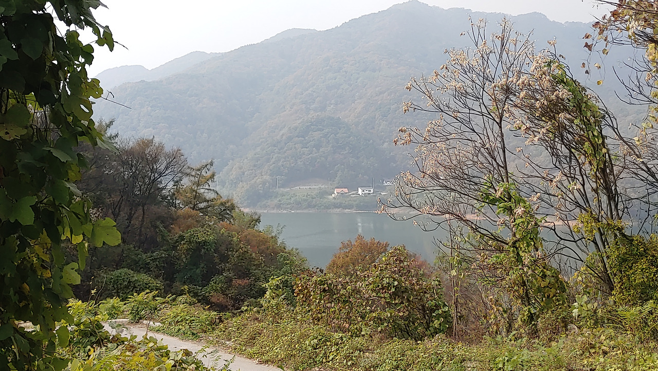 도로 왼쪽으로 10분 정도 달리다 보면, 폐가로 남겨진 금월봉 쉼터 건물과 청풍 마리나로 내려가는 길이 보인다. 사람들 발길이 닿지 않는 풀숲에서 자주, 노란, 연보라색 꽃들이 아무 근심 없어 보이는 해맑은 얼굴로 우릴 맞아주었다.