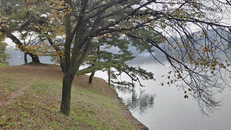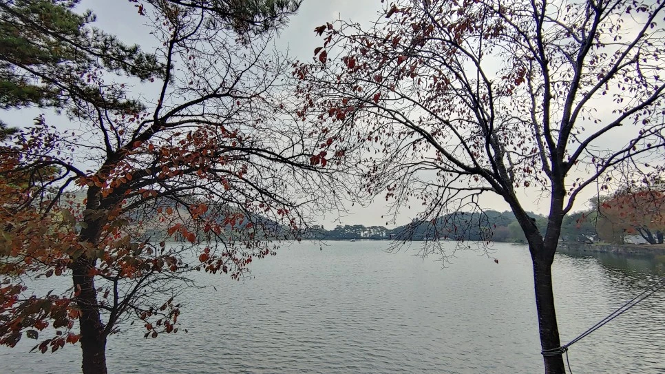 눈부신 파란 하늘과 빛나는 햇살이 아쉽긴 했지만, 호수 위로 드리워진 가을빛은 오히려 차분하고 여유로워 보였다.