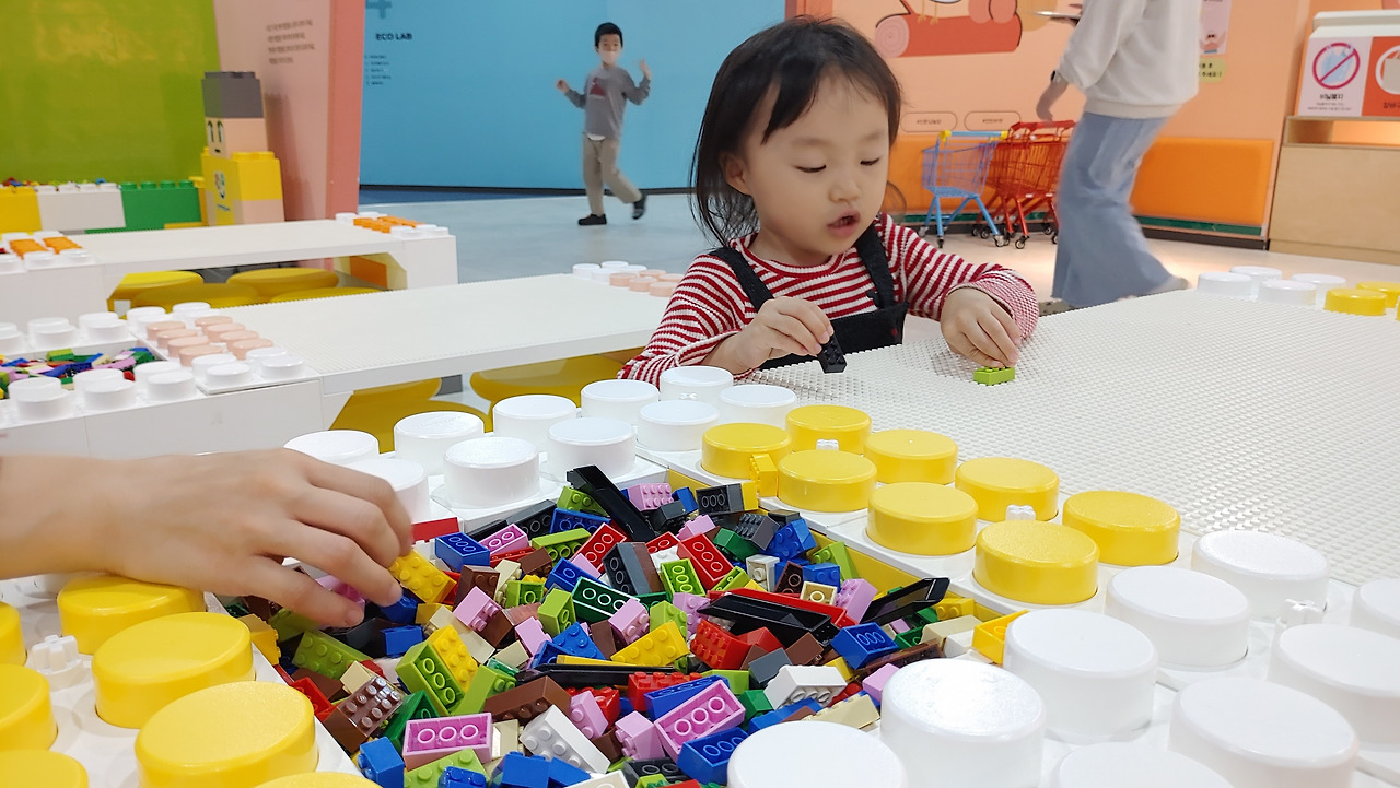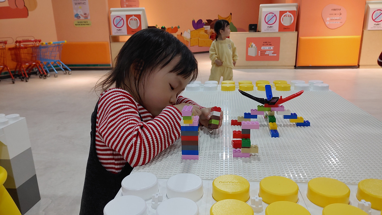38개월짜리 꾸미에겐 화면을 통해 바라보는 공간들보다는 손으로 직접 만져보며 체험하는 블록조립에 더 꽂혀있는 것이 당연했다.