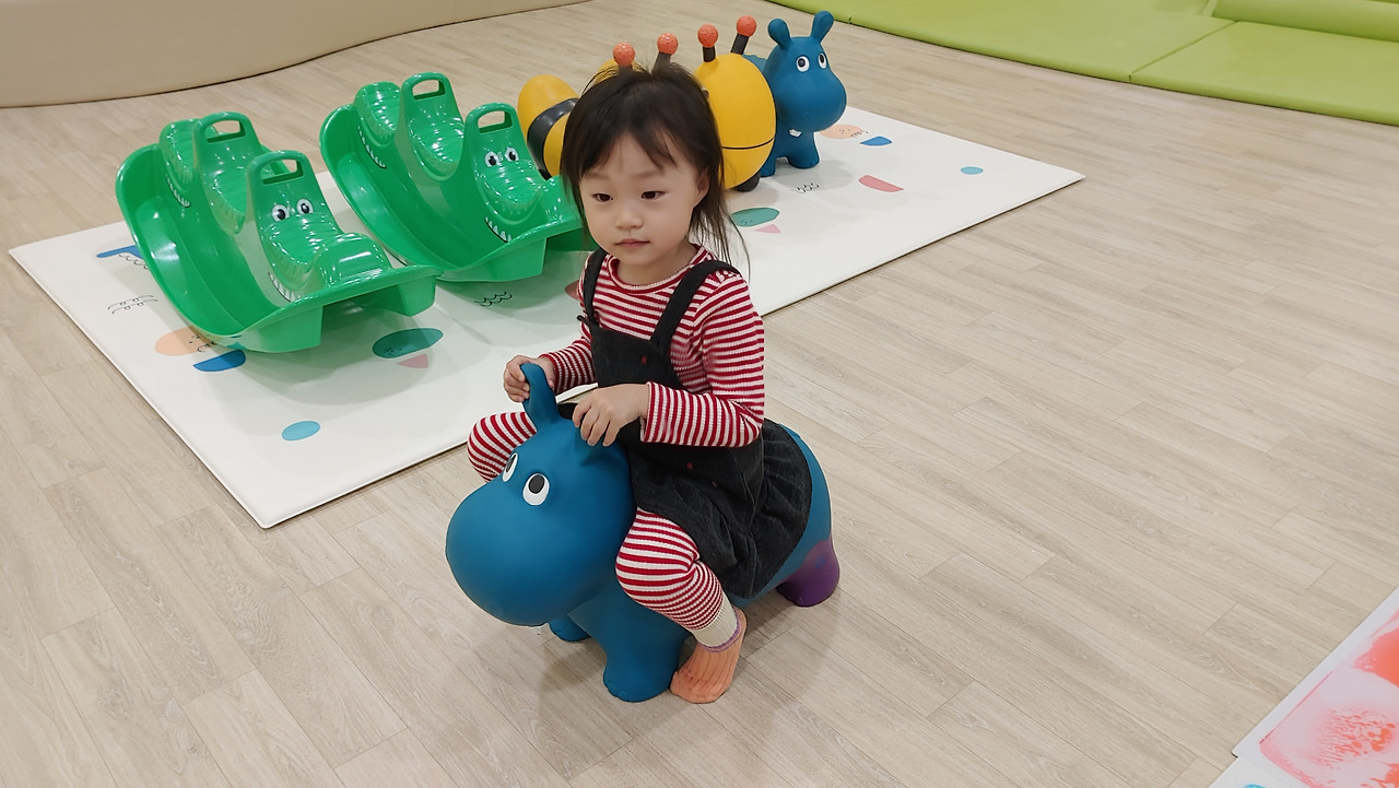 하마는 귀여우니까, 그냥 한 번 슬쩍 타고 내린 꾸미. 아무래도 꾸미는 이제 4살 언니니까!'