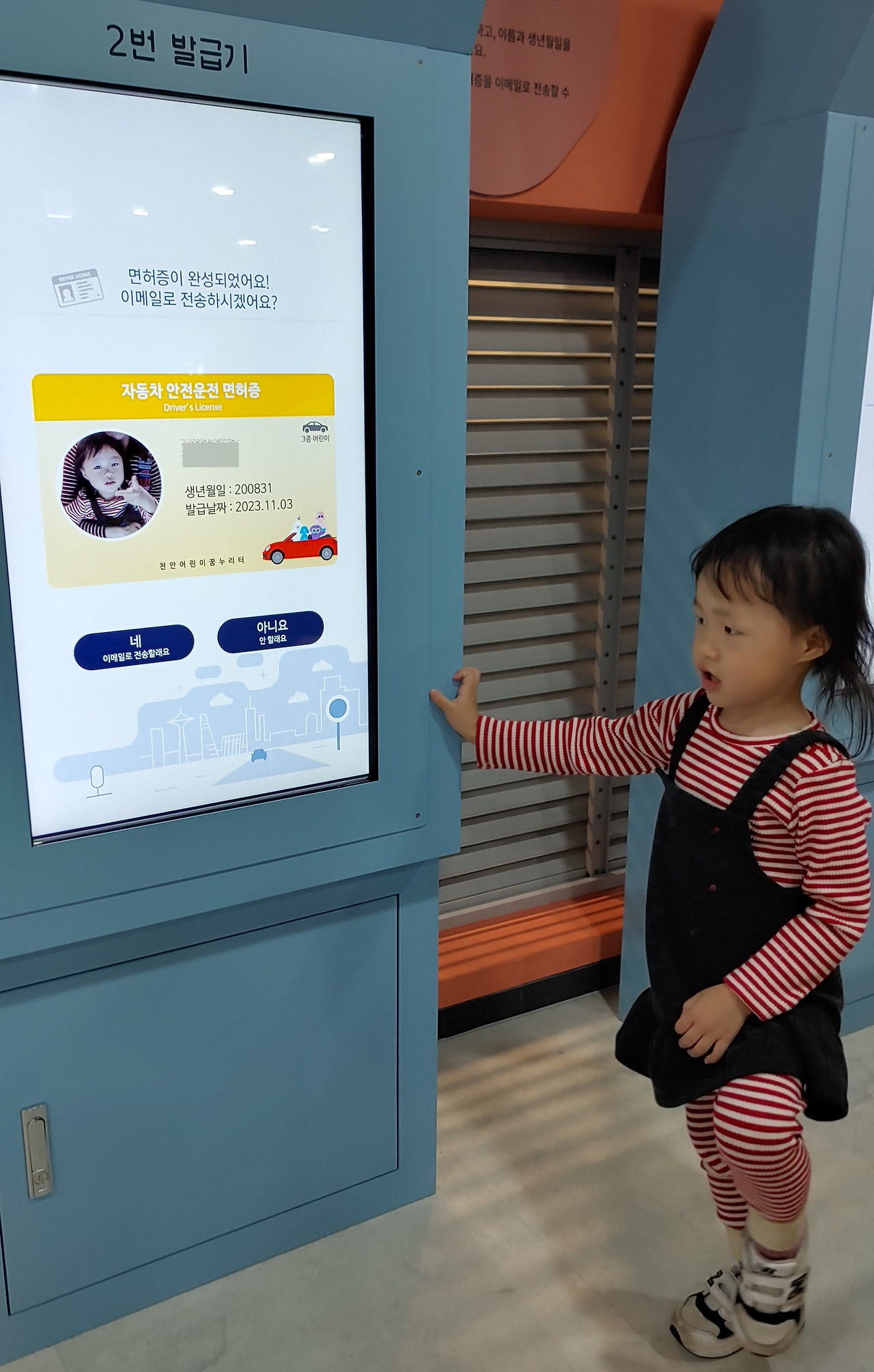발급기에 부착된 카메라로 사진을 찍고, 엄마가 입력해 준 이메일주소를 눌러서 운전면허증을 메일로 보내는 것까지 꾸미가 직접 해냈다.