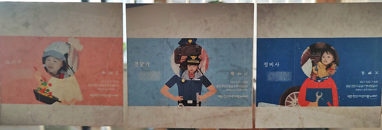 꾸미는 요리사, 경찰관, 정비사 명함을 만들었다.