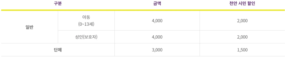 휴관일: 매주 월요일, 법정공휴일(명절 포함), 보수 기간, 기관장 재량에 따른 휴관