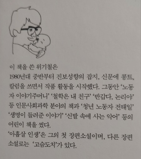 위기철 첫 장편소설인 『아홉살 인생』은 1960년대 서울 산동네 가난한 사람들의 이야기를 담고 있다.
