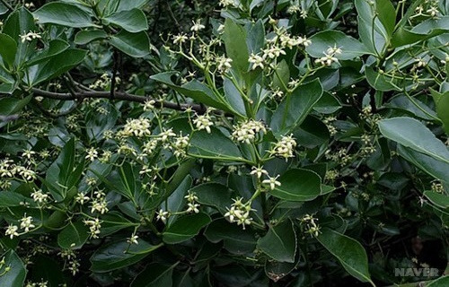 사철나무는 서로 햇빛을 잘 받기 위해 잎이 서로 겹치지 않게 양보하듯 지그재그로 나있다.