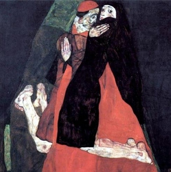 실레가 클림트의 작품에서 영향을 받은 흔적은 클림트의 <키스>와 비교되는 <추기경과 수녀>의 작품과 <다나에>라는 같은 제목의 그림을 그린 것에서 드러난다.