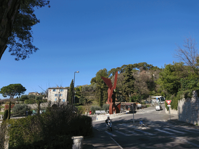 '생 폴 드 방스' 마을 어귀에 세워져 있는 샤갈 그림, '파란 풍경 속 부부'