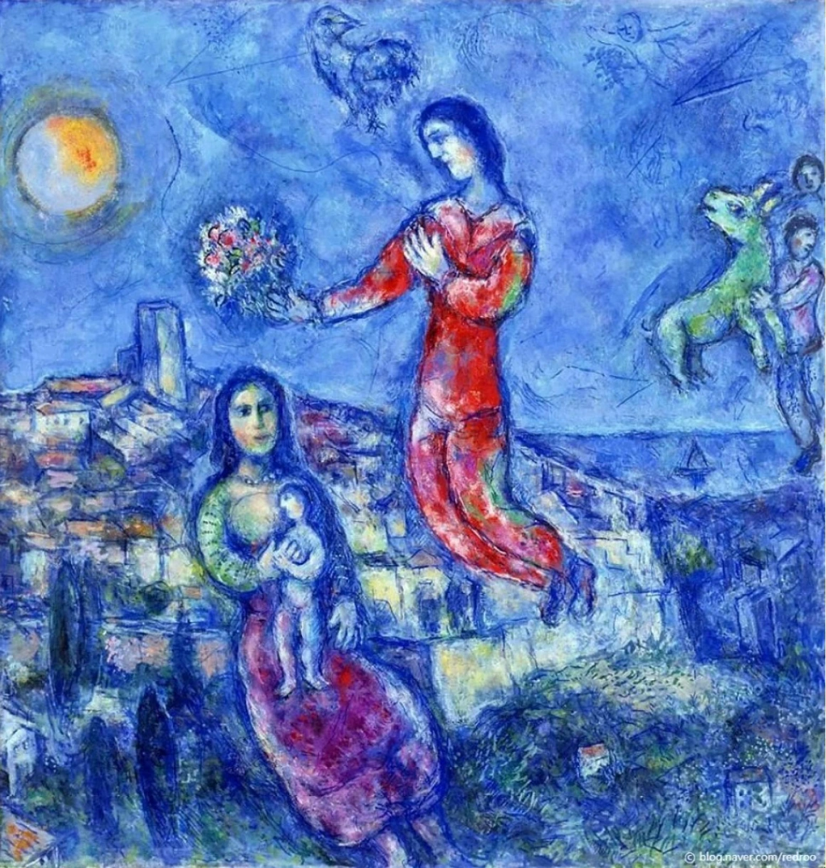 샤갈의 그림은 밝고 온화하다. 편하게 감상할 수 있으니 기분이 좋아진다. 그래서 많은 사람들이 그의 작품을 사랑하나 보다.
