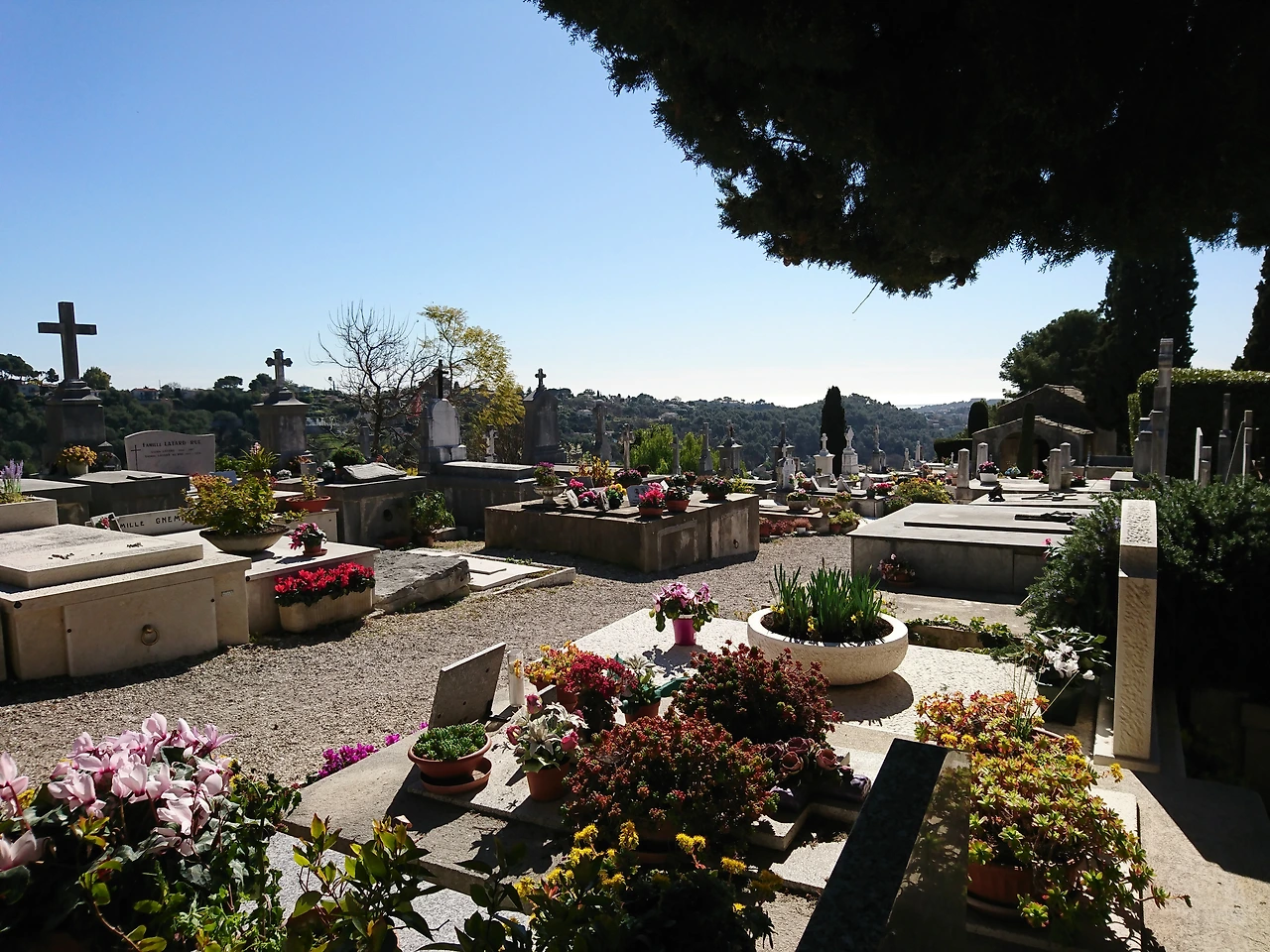 묘지 위로 내리는 지중해 햇살이 눈 부시다. 죽어서도 이런 풍경과 밝음을 누릴 수 있다니, 이곳이 천국인 것만 같다. 평소 생각하던 조금 우울하던 묘지와는 전혀 다른 느낌이랄까!