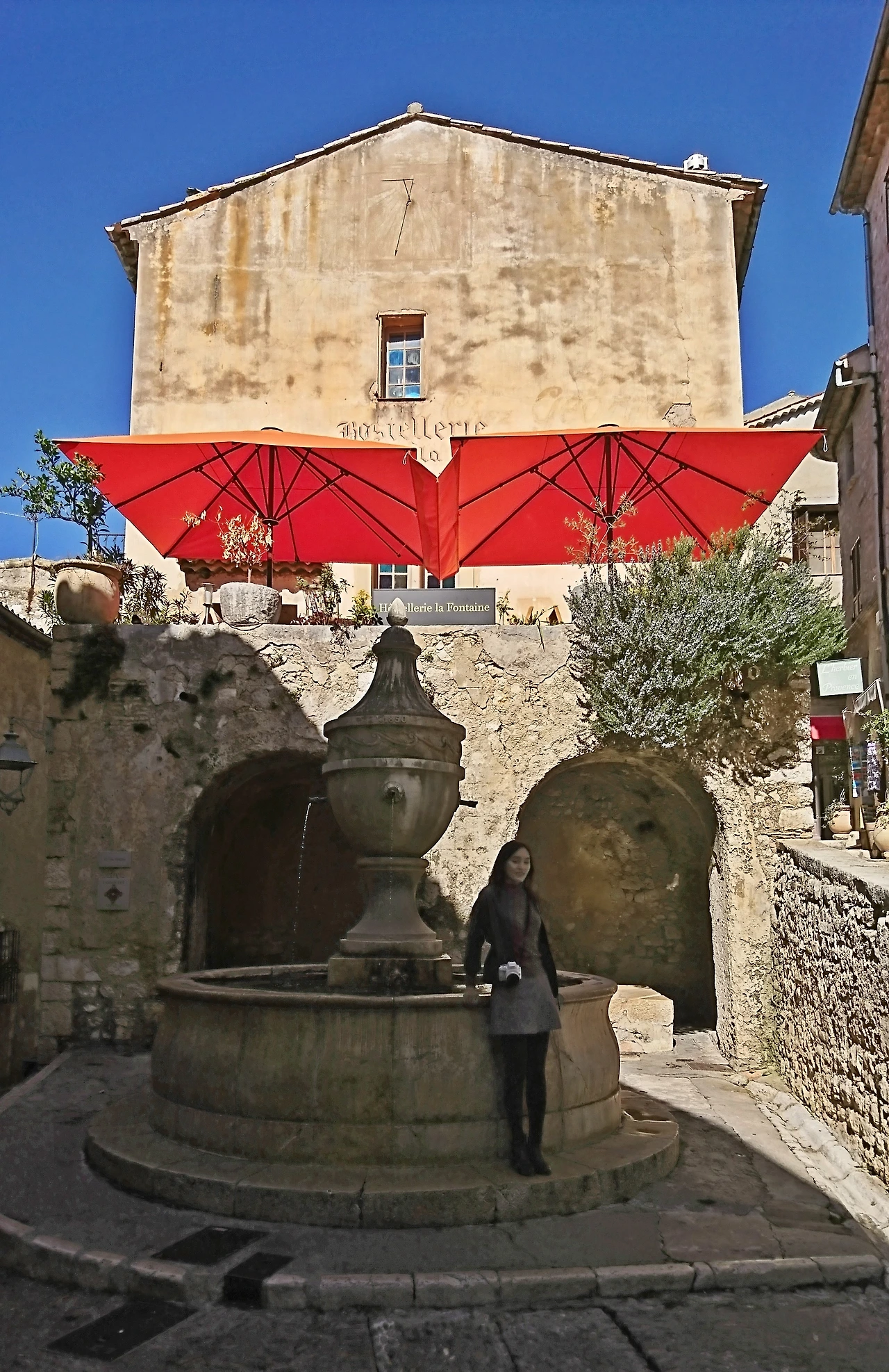 위는 콜롱브 도르 카페 아래 고풍스러운 우물과 뒤로 옛 빨래터도 보인다.