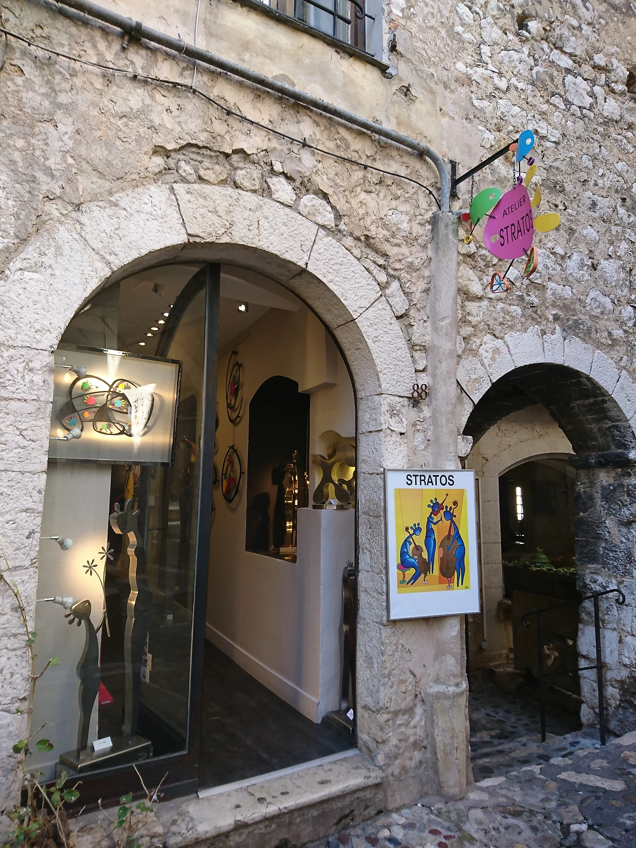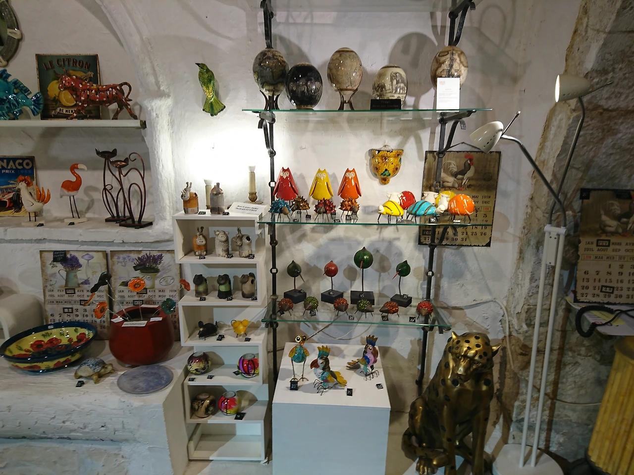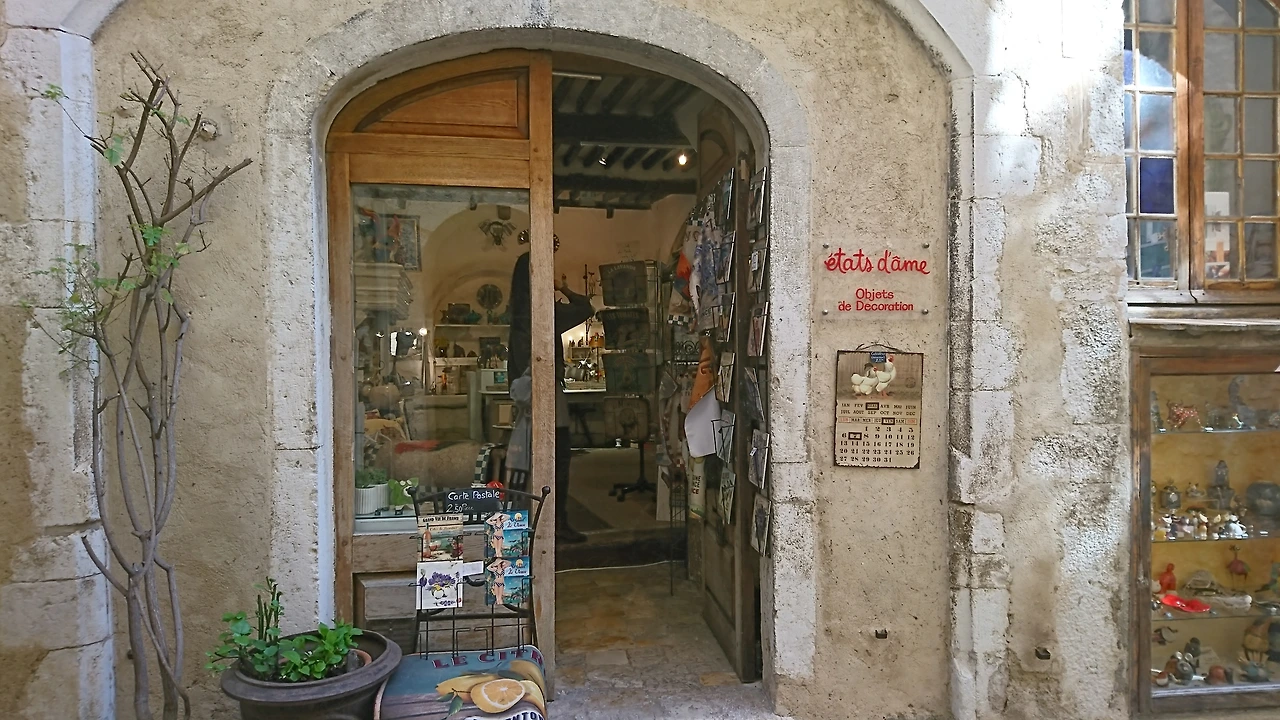 실제 생폴 드 방스 그랑 거리에는 70여 개 갤러리가 운영 중이라니, 골목을 걷다 보면 두 집 건너 한 집이 갤러리라 해도 과장이 아니다. 기념품 샵과 상점들도 갤러리 같은 품격과 멋을 드러낸다. 진열된 핸드메이드 제품에서는 장인의 손길이 느껴진다.