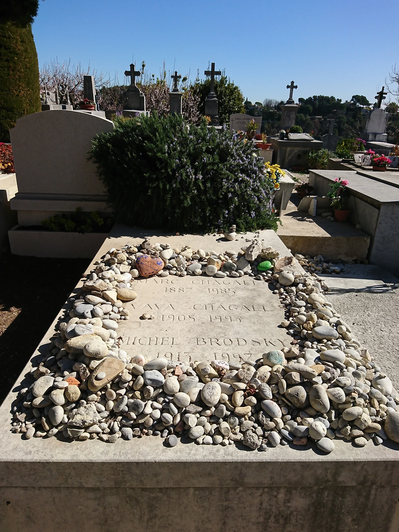 샤갈과 2번째 부인 바바의 묘 - 죽어서도 다정하게 함께 잠든 샤갈 부부의 묘지 위엔 추모의 돌멩이들이 가득!