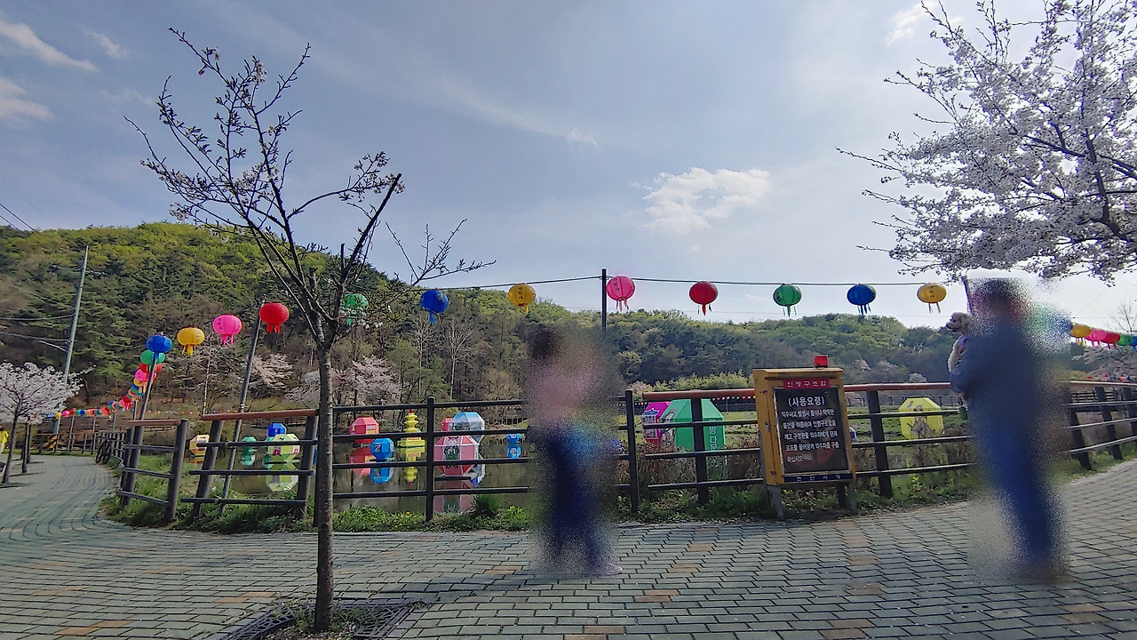 '연화지' 연못을 오른쪽으로 끼고돌아, 태조산 자락 위로 오른다. 연화지 위로 석가탄신일을 기념하기 위한 연등들이 곱게 늘어서 있다.