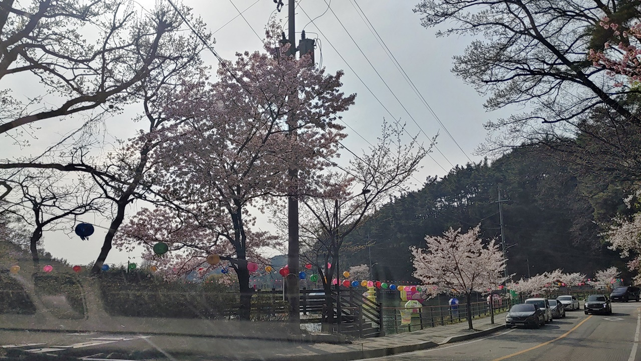 우리는 '태조산루' 앞 주차장에 차를 세워두고, 벚꽃길을 걷기 시작했다.