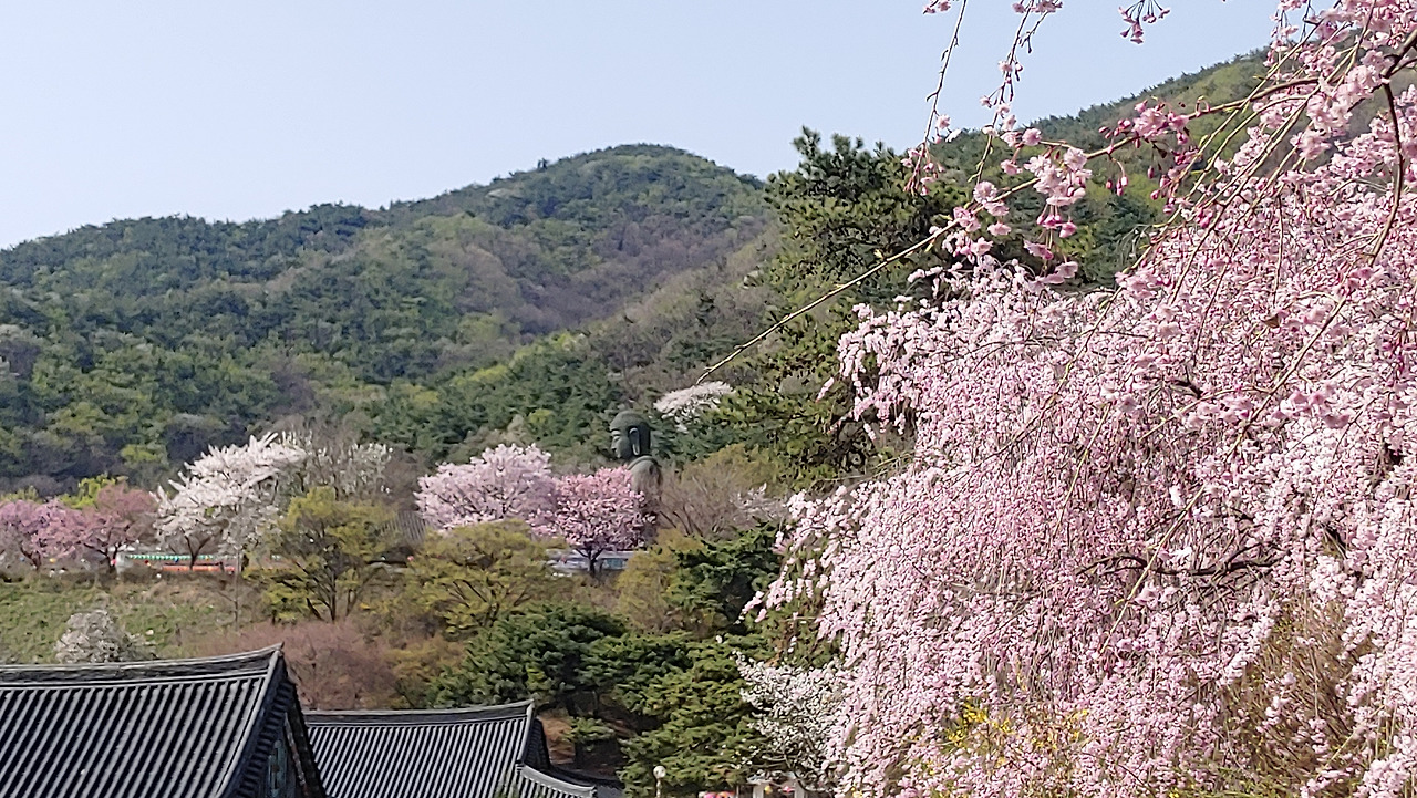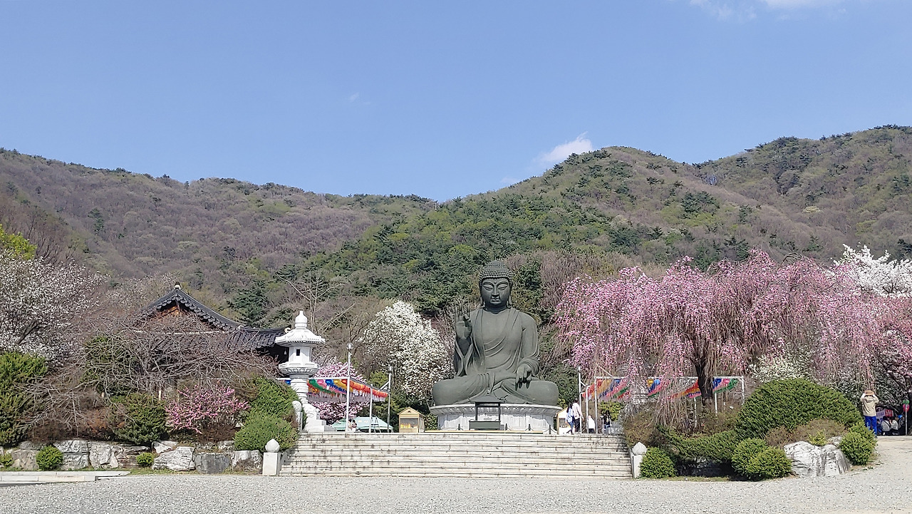 각원사는 아름다운 겹벚꽃 명소이기도 하지만, 60 ton의 '청동좌불'인 '청동 아미타불상'으로 더 유명한 사찰이다. '칠성각'을 뒤로하고 청동 좌불상이 있는 곳으로 올라간다.