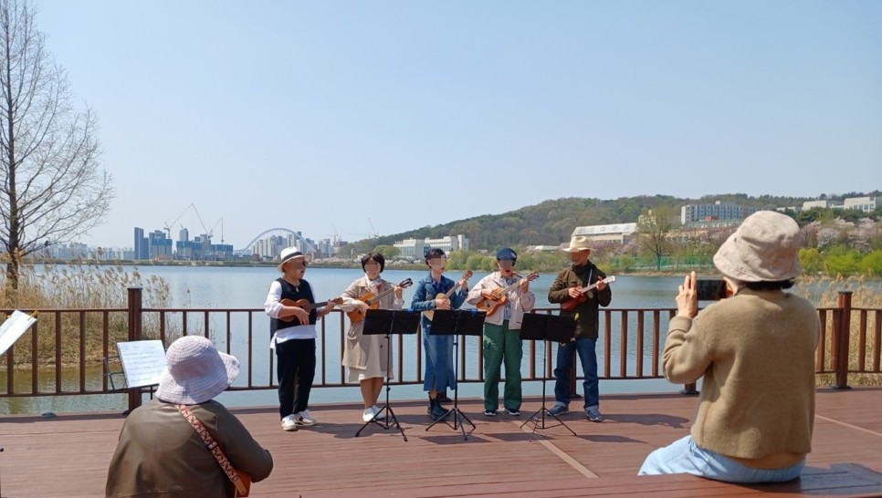 하루 전날인 9일, '성정 평생학습관' 수요일 우쿨렐레 대체 수업은 천호지에서 야외수업으로 진행됐다.