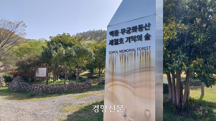 지난 12일 전남 진도 팽목항 인근에 조성된 ‘세월호 기억의 숲’ 안내 간판이 녹슬고 파손돼 있다. 이 숲에는 희생자들을 기리는 300여 그루의 은행나무가 심어져 있지만 관리가 안 돼 죽거나 잘린 나무들이 많았다. - 2023.04.13 강현석 기자
