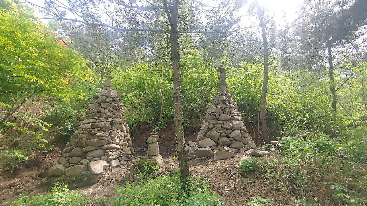 용이 꿈틀거리는 형상의 초평호가 눈길을 끄는 '농다리 등산로' / 누군가의 소원까지 함께 쌓인 돌탑들