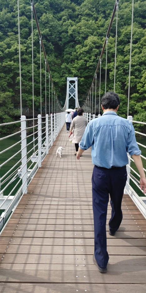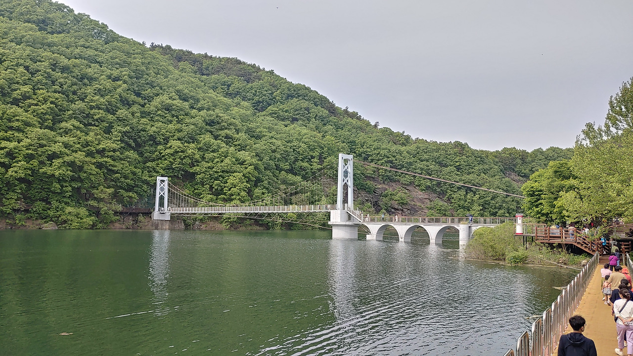 형님 격인 '하늘다리'는 현재 4월 12일 출생한 아우님 '출렁다리'의 유명세에는 미치지 못하나, 초평호 위 한 폭 그림같이 놓인 아름다운 현대식 다리다.