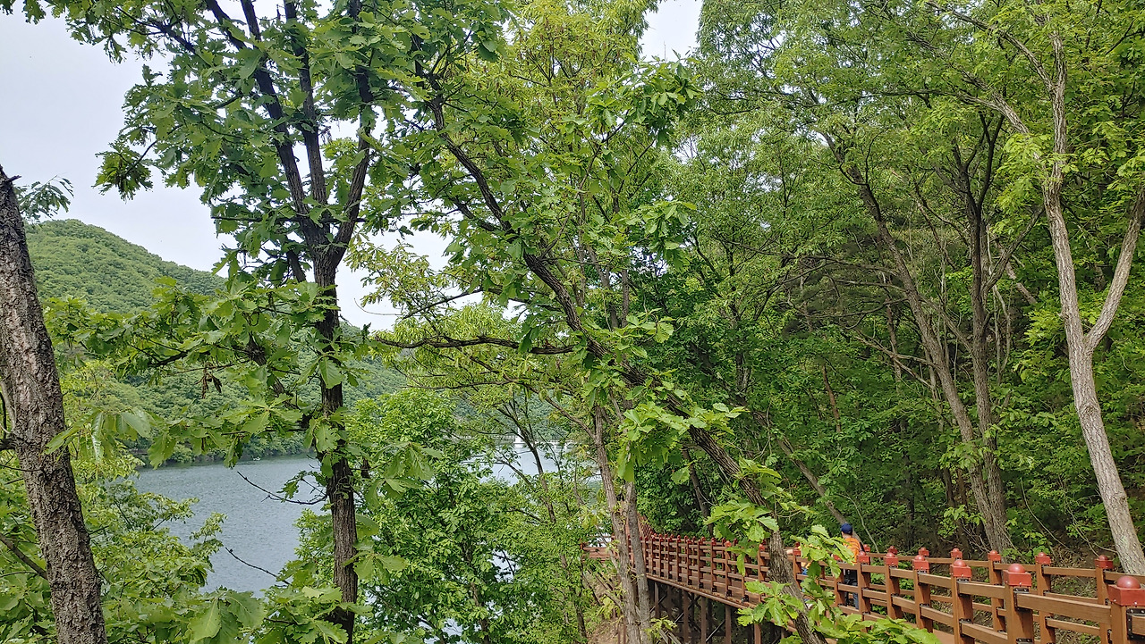 초롱길은 초평호를 끼고 하늘다리 건너까지 쭉 이어진 데크길로 생태친화적인 산책길이다.