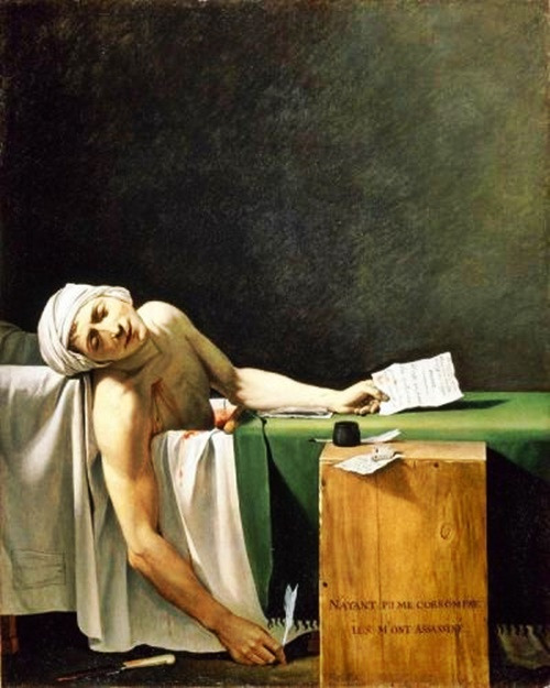 다비드는 '마라의 죽음'에서 마라를 매력적인 영웅으로 묘사했다.