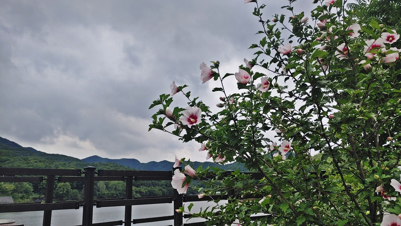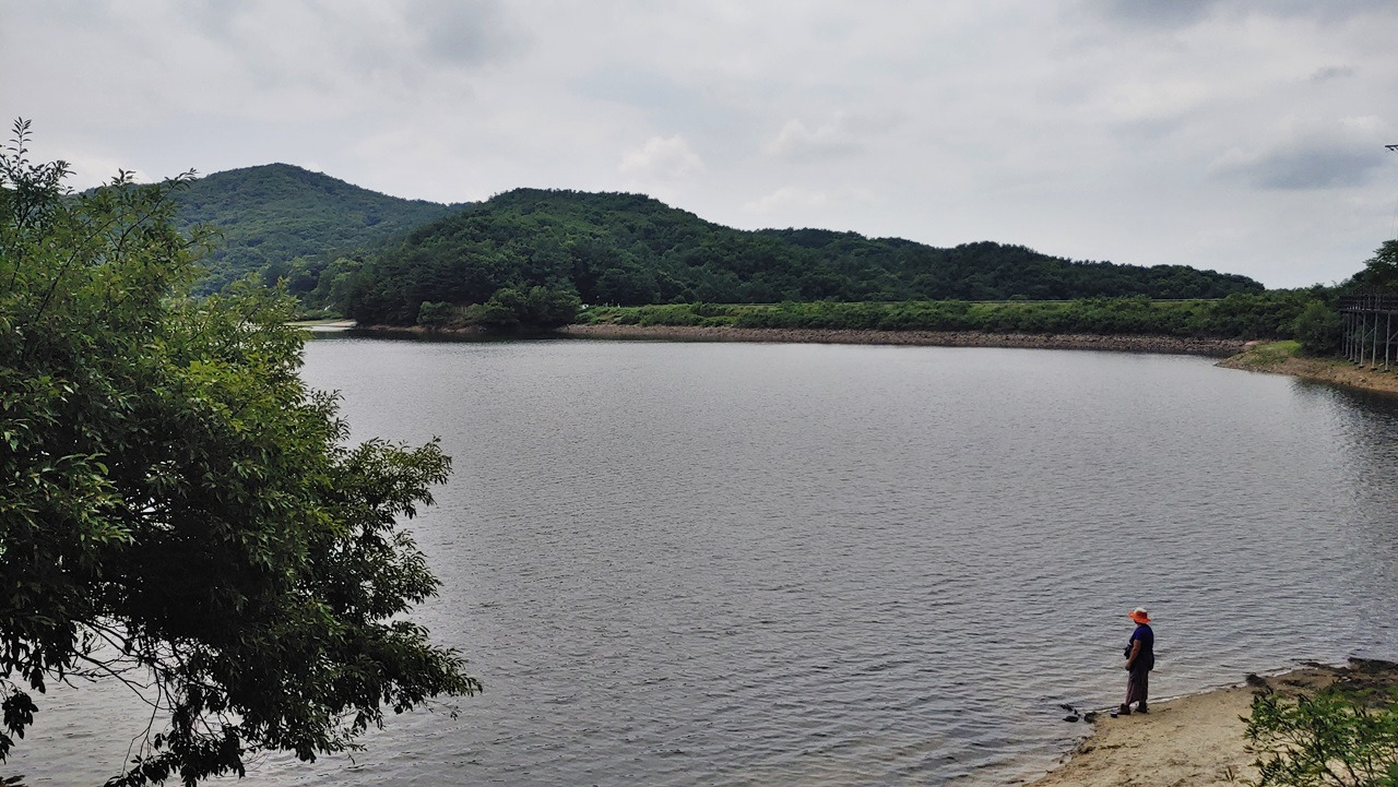 천안 천흥저수지 테크 산책길로 나선 길, 회색 구름 사이로 아주 간혹 잔 빗방울이 몇 방울 떨어지기도 했고, 햇살도 잠깐 눈인사를 따갑게 흘려보내곤 이내 먹구름 속으로 사라져 버렸다.