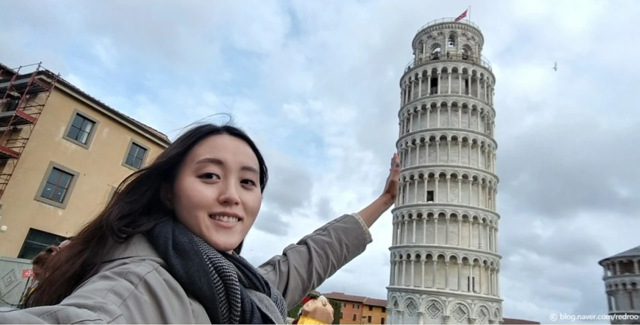 기운 센 엄마 주주는 가뿐하게 피사의 사탑을 잘 받치고 있다. 딸 레드루가 카메라 포커스를 잘 맞춰 찍은 때문이다.