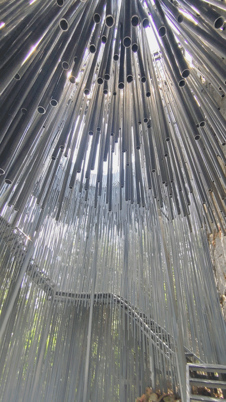 무생물인 은빛 철 구조물이 마치 살아있는 초록빛 나무들처럼 바람에 흔들리면서 각기 다른 높낮이의 목소리를 낼 때마다 경이롭기까지 했다.