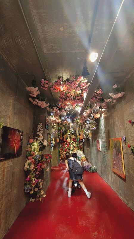 현대미술 1관 '시간의 거울'에서 만났던 붉은 인간이 꽃으로 장식된 포토존을 지키고 있어, 내심 반가웠다.