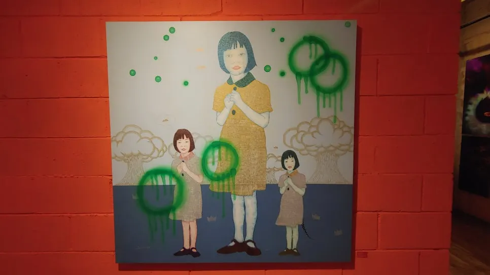 천장에는 풍선과 조형물들이 매달려 있고, 다른 쪽 벽에는 파란 하늘을 날고 있는 멍멍이들이 꿈길을 걷는 듯 가볍게 날고 있었다. 멍멍이는 모두 주황과 노랑 풍성을 매달고 자유롭게 하늘을 유영하고 있었다.