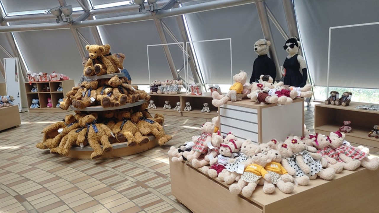 테디베어 뮤지엄 샵에서 다양한 정품 테디베어 봉제인형은 물론 티셔츠, 가방, 문구, 핸드폰 줄 등 실생활에 유용한 다양한 소품과 액세서리를 팔고 있다.