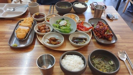 이곳은 가정식 백반 전문점으로, 제주 시내 아라동 중심부에 있어서 관광객보단 현지인들이 즐겨 찾는 곳으로 보였다. 우리는 12시 30분경, '달그락 식탁'으로 들어섰다.