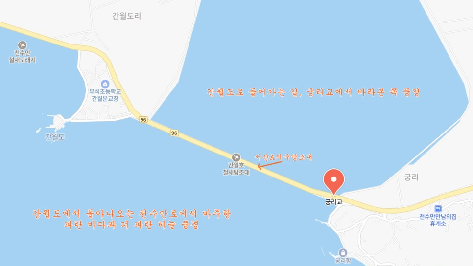 천수만 방조제로 들어서면, 궁리교가 있다.