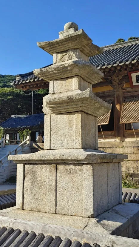 조인 정사 앞에 세워진 칠 층 석탑은 화강암으로 만든 탑이다.