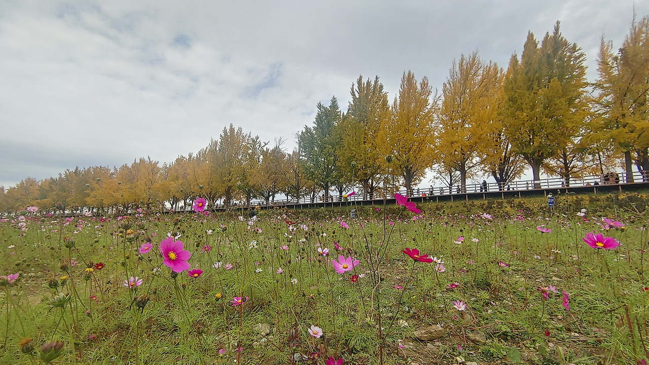 지상에는 우주를 상징하는 가녀린 코스모스 꽃들이 차가운 천변 바람을 맞으며, 아름다운 춤사위를 쉬지 않았다.
