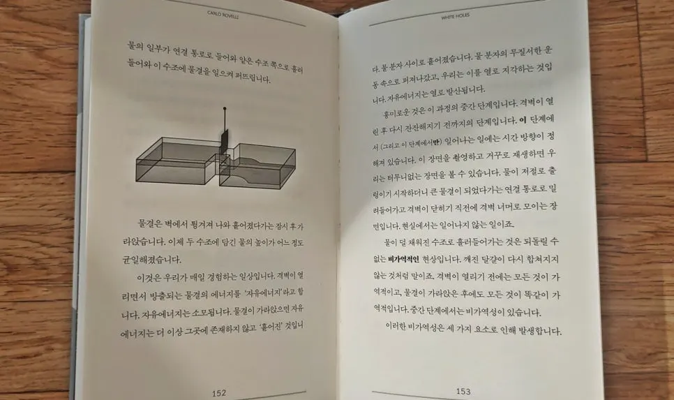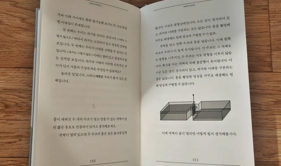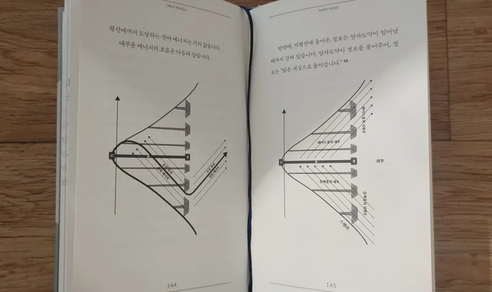 '안쪽은 양자 터널 효과에 의해 블랙홀이 화이트홀로 변하지만, 바깥쪽은 동일하게 유지될 수 있다는 건데...' 나 같은 이론 물리학의 문외한에겐 아리송한 단어들의 나열이었다.