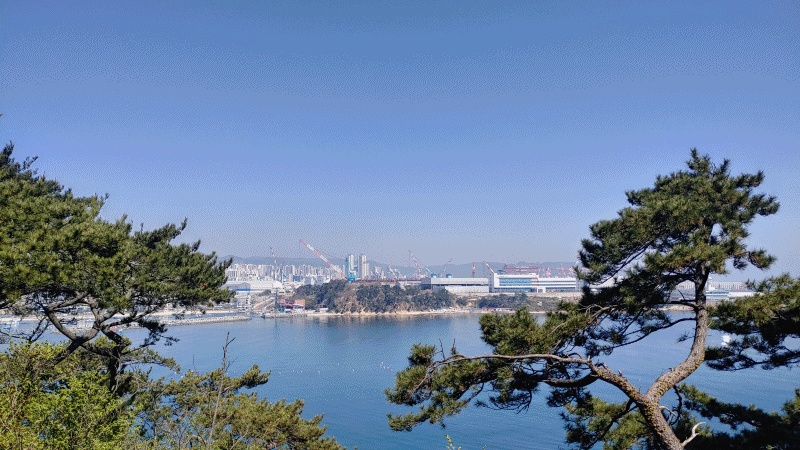 대왕암 공원으로 향하는 방어진 순환도로 오른쪽으로 현대미포 조선이 보인다.