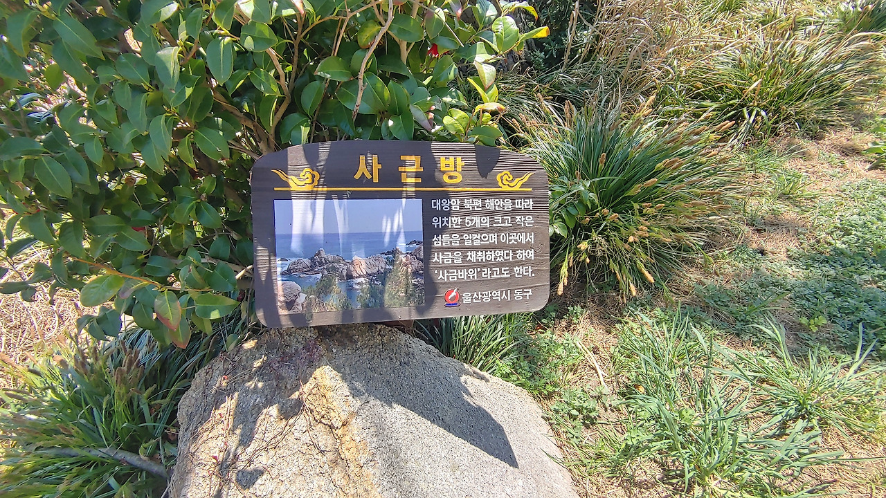대왕암 북쪽 해안을 따라 있는 5개의 섬들을 일컫는 '사근방'이 있다.