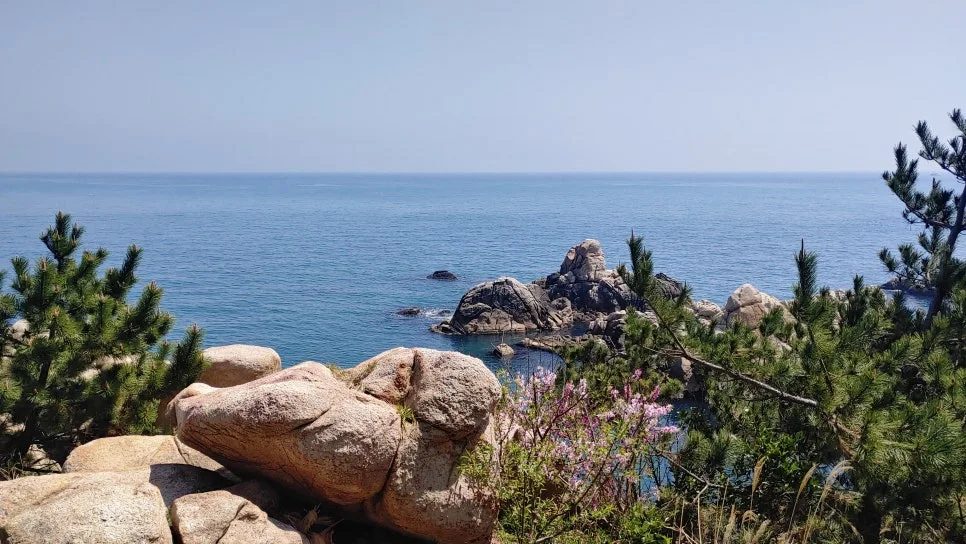 대왕암 포토존을 지나면, 동쪽 바다 끝으로 대왕암의 거대한 바위 군(群)이 보인다.