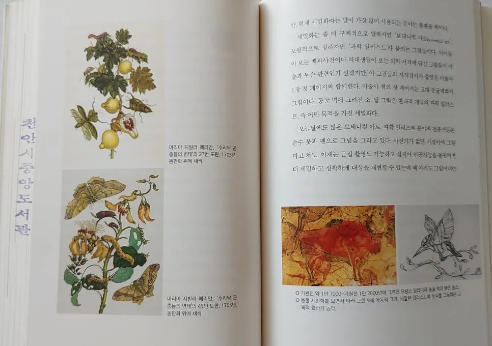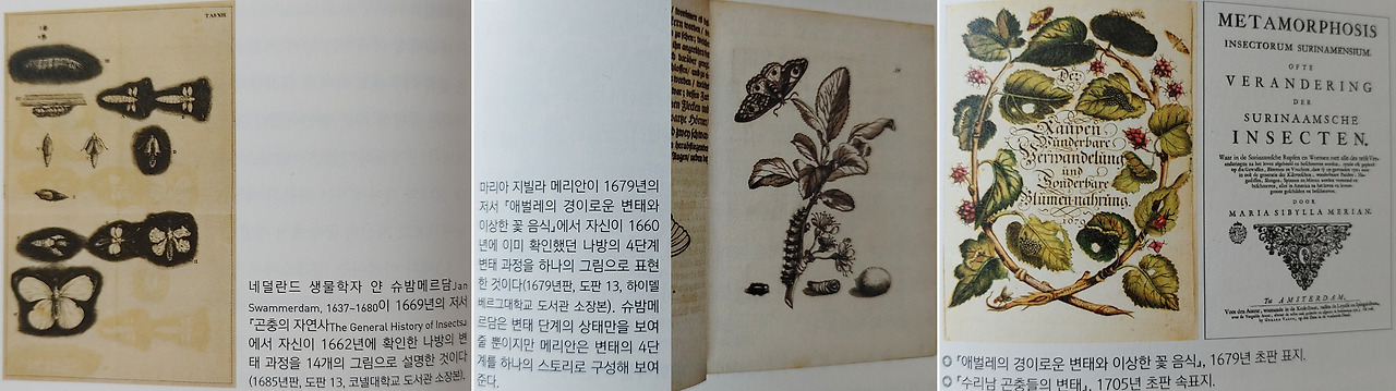 생물학의 역사를 바꾼 화가, 마리아 지밀라 메리안(Maria Sibylla Merian, 1647~1717)은 유럽에서 존경받는 독일 생물학자이자 세밀화 삽화가였다. 1705년 마리아는 <수리남 곤충들의 변대>를 출간했다. 생물학자라면 금과옥조로 여기는 책이다. 그녀의 연구는 훗날 동식물 종 분류의 기초가 되었다. 마리아의 저서들은 18세기부터 유럽 도서관들의 필수 소장본이 되었다. 마리아는 전 세계 보태니컬 아티스트, 과학 일러스트레이터들이 가장 존경하는 선구적 인물로 기억되고 있다.