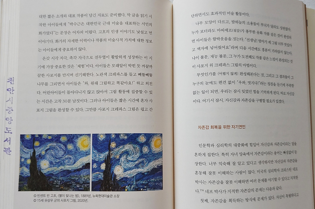 어느 성향의 아이가 미술 영재냐는 질문은 의미가 없다. 단순한 기질적 차이일 뿐이다. 모든 아이에게는 각자의 공포와 두려움을 지니고 있지만, 그 갈등을 해결하는 과정에서 좀 더 표출적 해소가 필요한 아이들도 있다. 이런 아이들은 어려서 겪은 트라우마를 해결하기 위해 그림과 글을 써서 자신만의 괴물과 용감하게 마주하고, 훌륭하게 화해하기도 한다. 이런 그림을 감상하면, 스토리텔링이 되기도 한다.