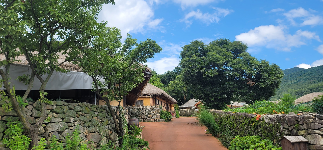 활짝 열려있는 초가삼간의 사립문으로 들어선다.