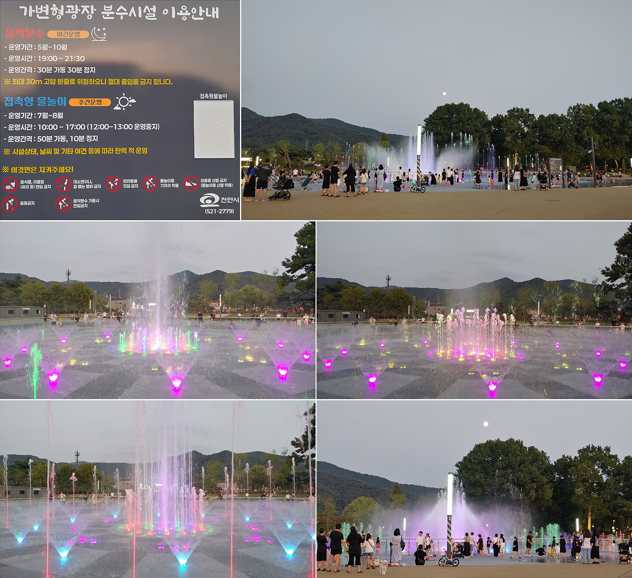 동쪽 하늘에 상현달이 걸려 있고, 천안삼거리 공원 수변무대 위에선 아직도 음악 분수가 노래하며 춤을 추고 있다.