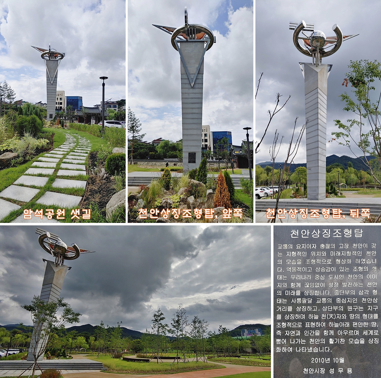 천안시 '공원녹지과'와 '차량등록사업소' 가까이 12번 버스 정류장이 있어, 걸어서 '천안삼거리' 대문 쪽에서 들어설 수도 있다. '천안상징조형탑'이 높게 서 있는 암석원부터 둘러보게 되는 코스다.